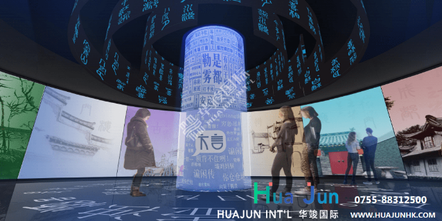 數(shù)字技術(shù): 玻璃幕墻 、 270度弧幕影院 、 互動拍照摳像系統(tǒng)等